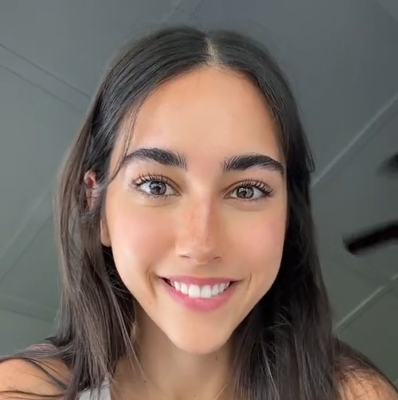 Her face lit up with excitement when she saw her own reflection, then turning her face to shock as if surprised by her own reaction.